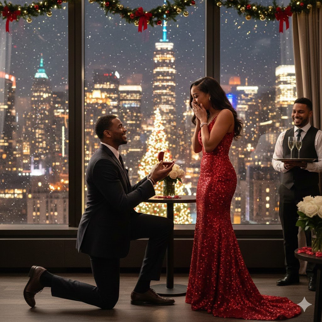 After five years of dating, NBA All-Star Karl-Anthony Towns proposed to Woods on December 25 in a romantic, intimate setting at a New York City cocktail bar.